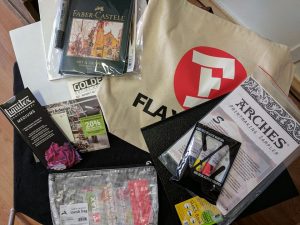 - DJ thanks Flax Art Supply in Oakland for the awesome prize bags!