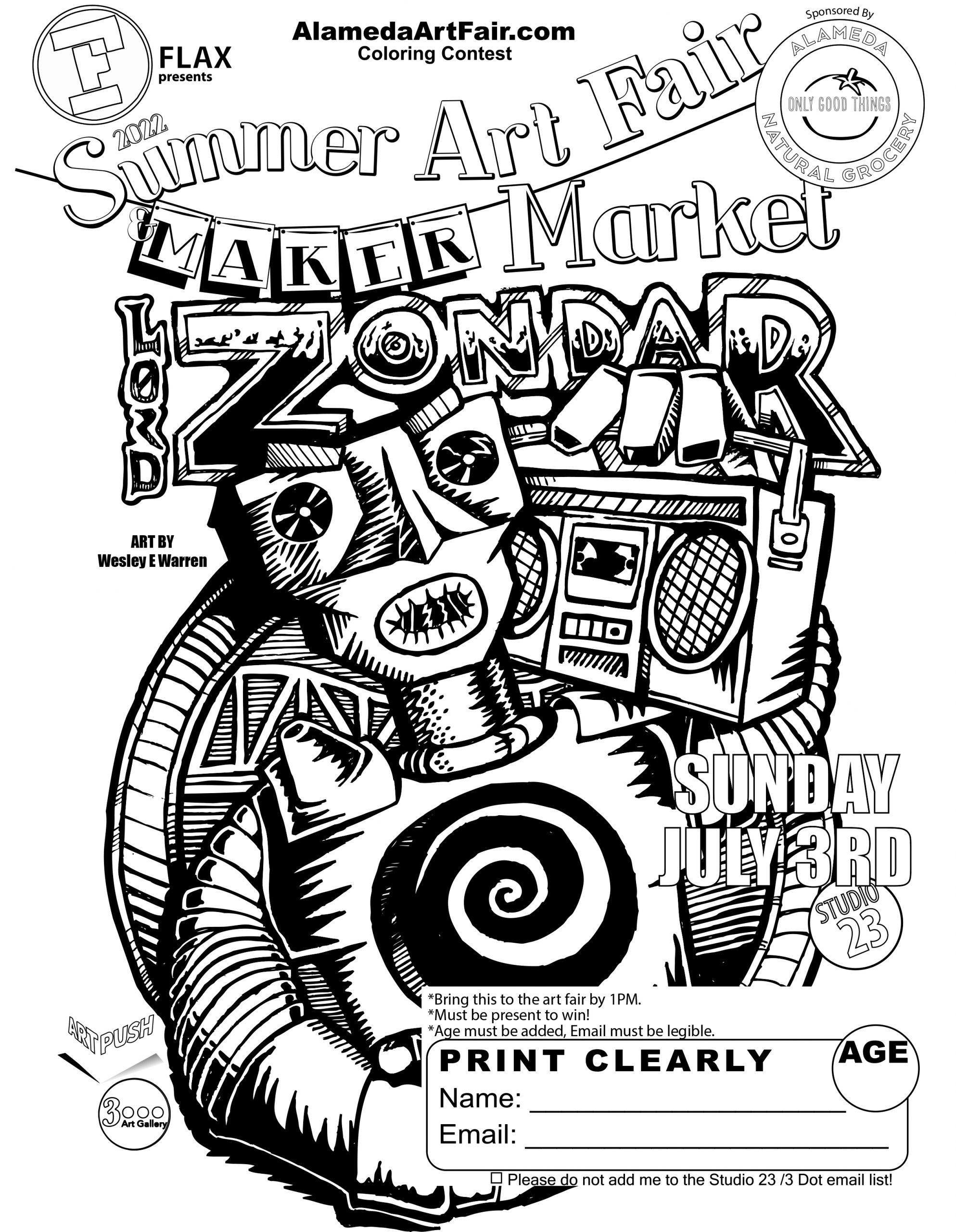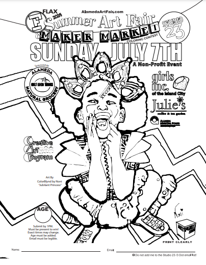 Every year the Alameda Summer Art Fair & Maker Market hosts an all ages coloring contest with amazing prizes provided by Flax!